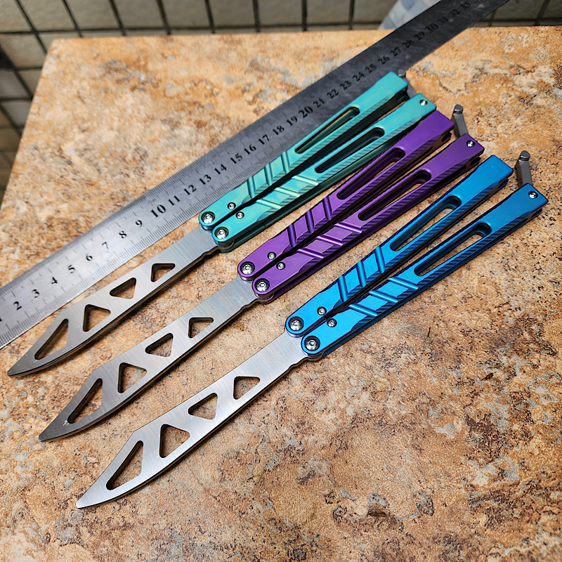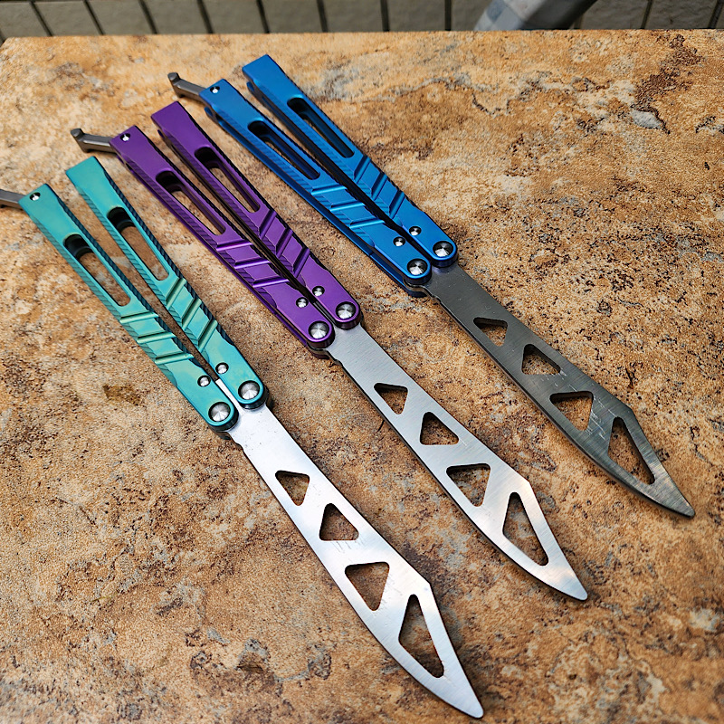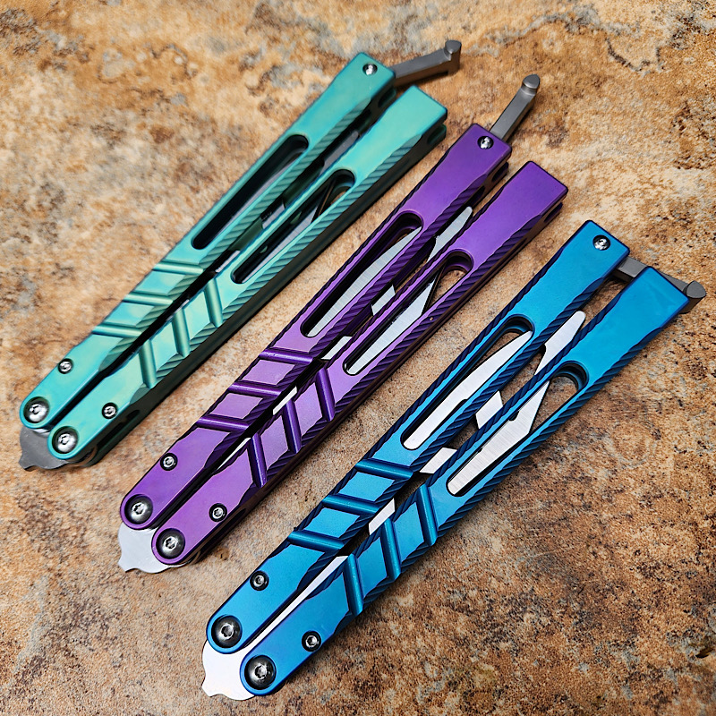 theone 二代升级版一体钛柄AB蝴蝶练习刃(绿色,蓝色,紫色)