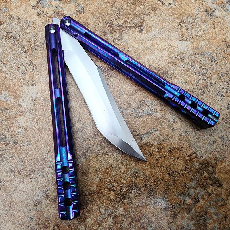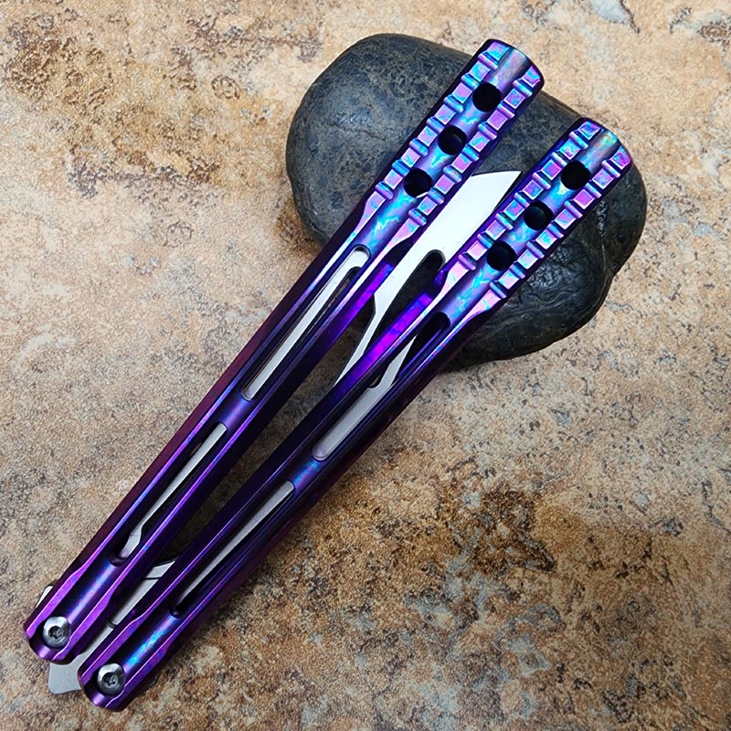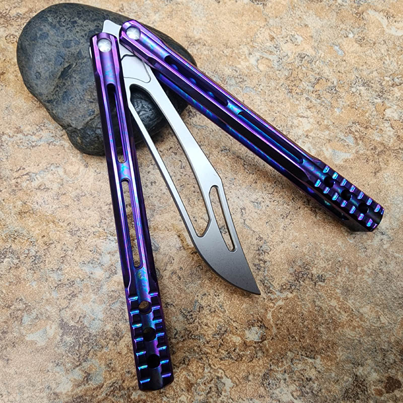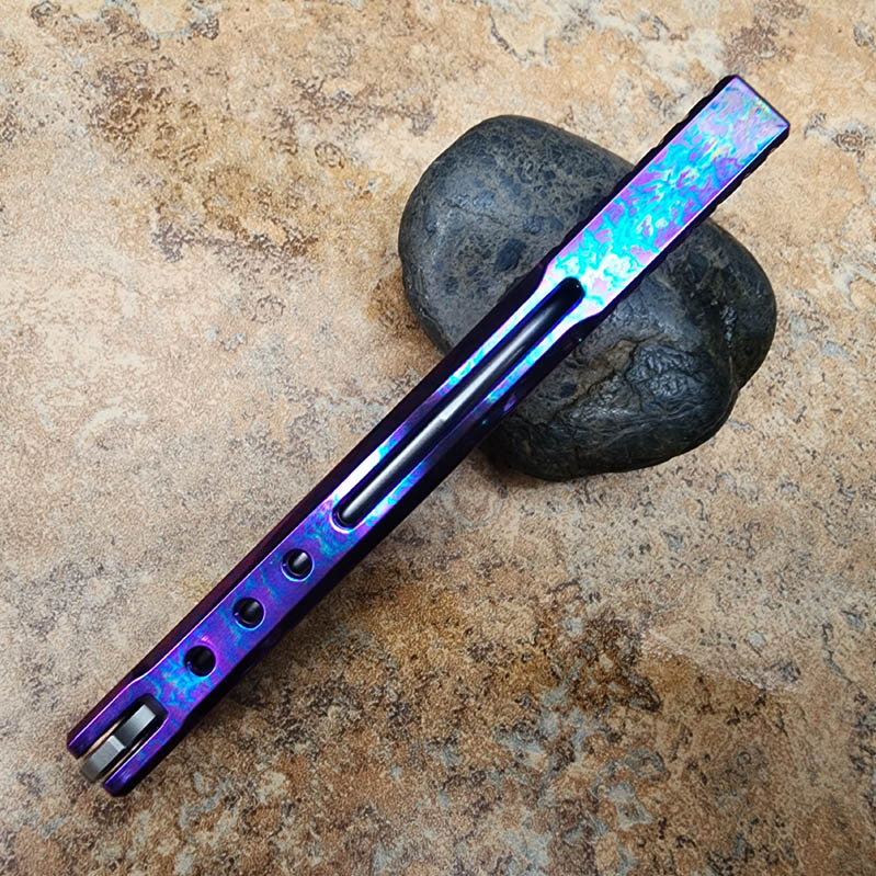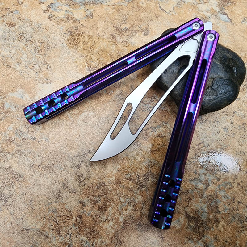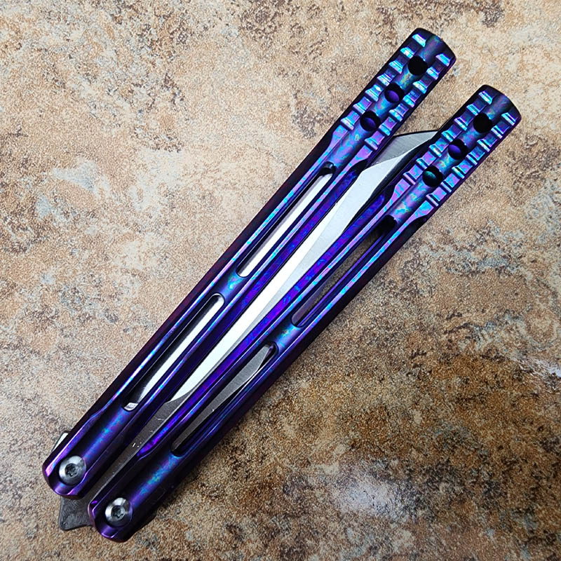 THEONE 一体钛柄火烧纹 orca 虎鲸蝴蝶甩刀系列