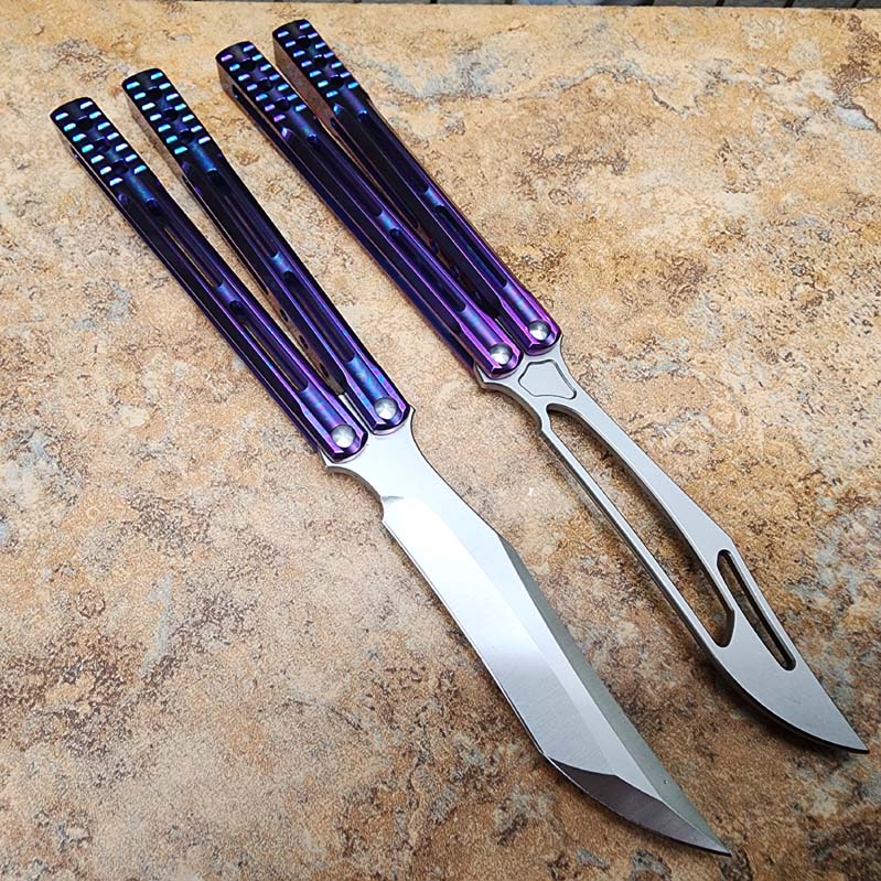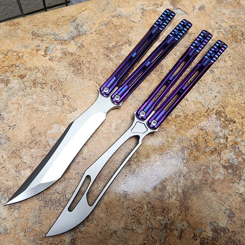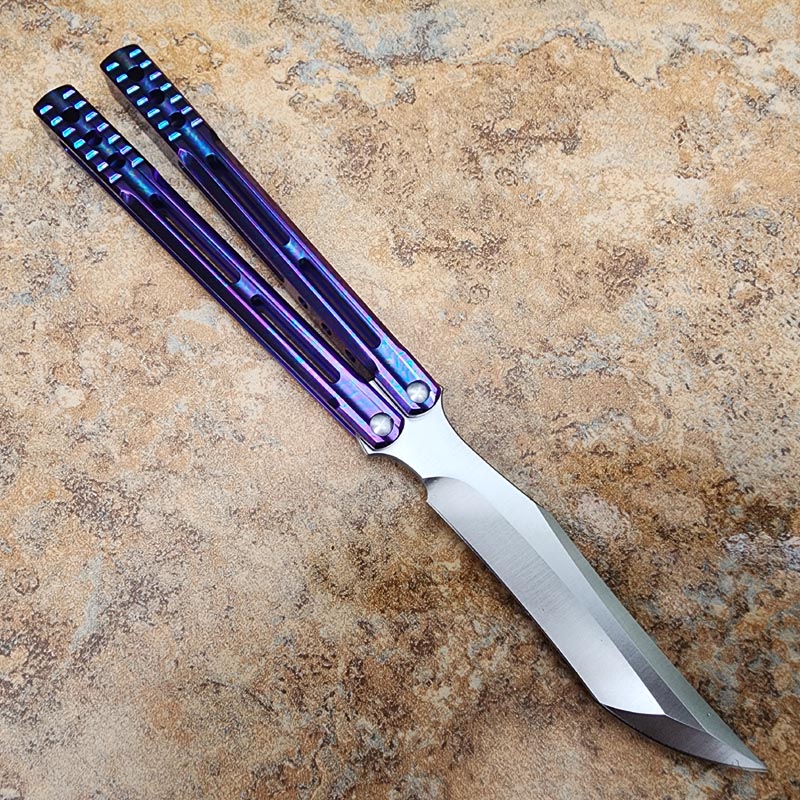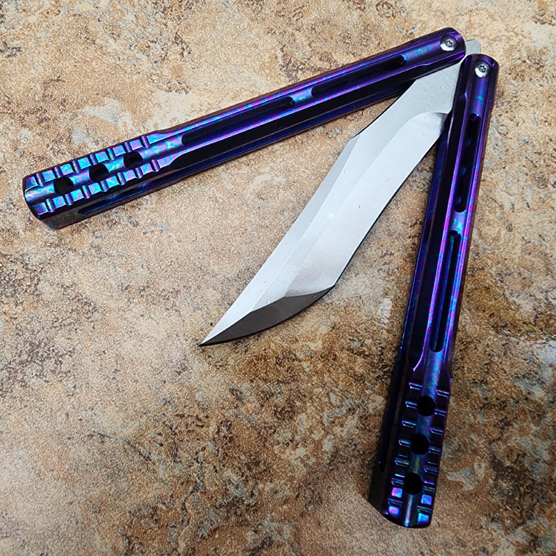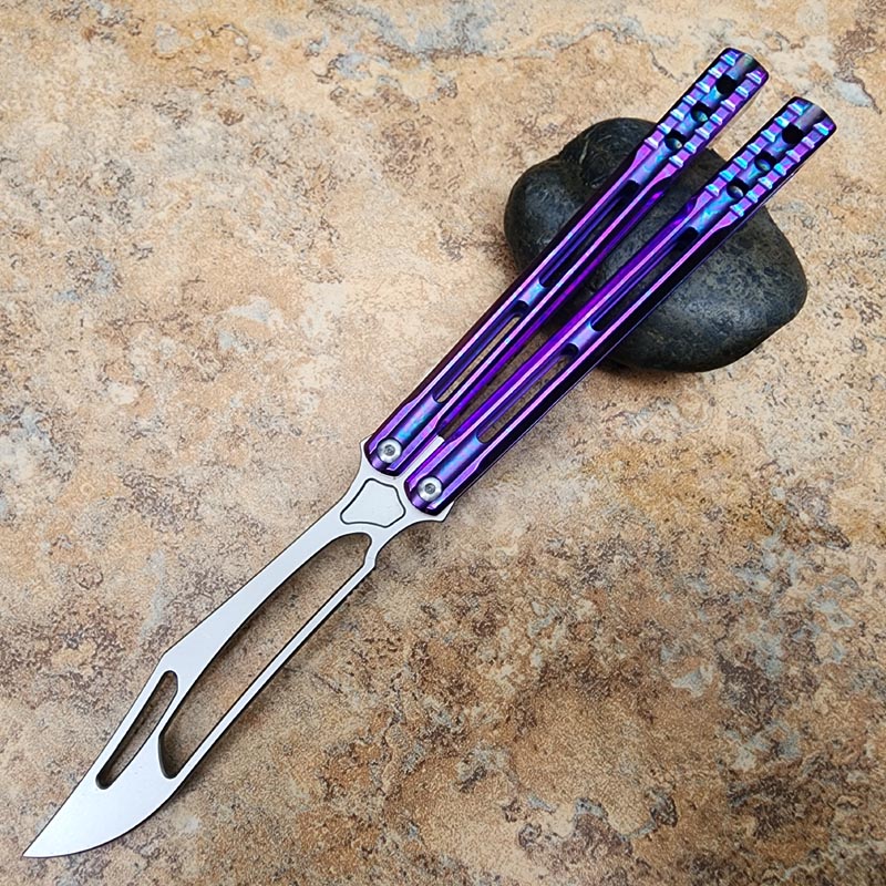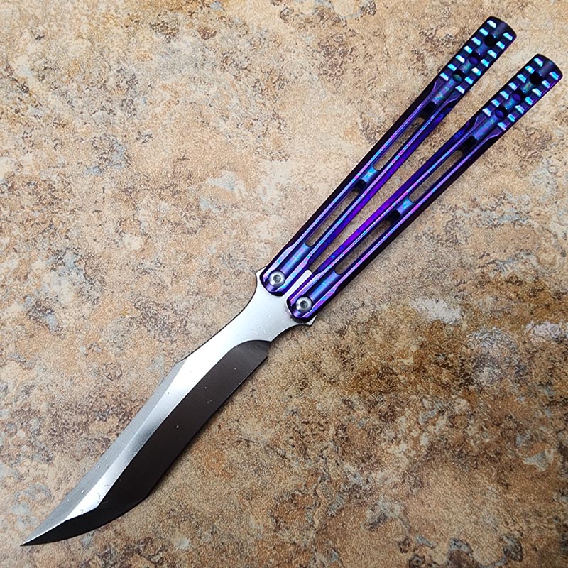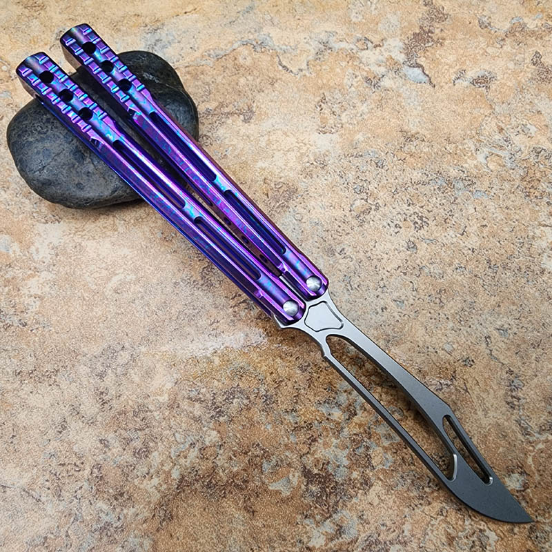 THEONE 一体钛柄火烧纹 orca 虎鲸蝴蝶甩刀系列