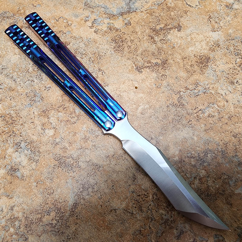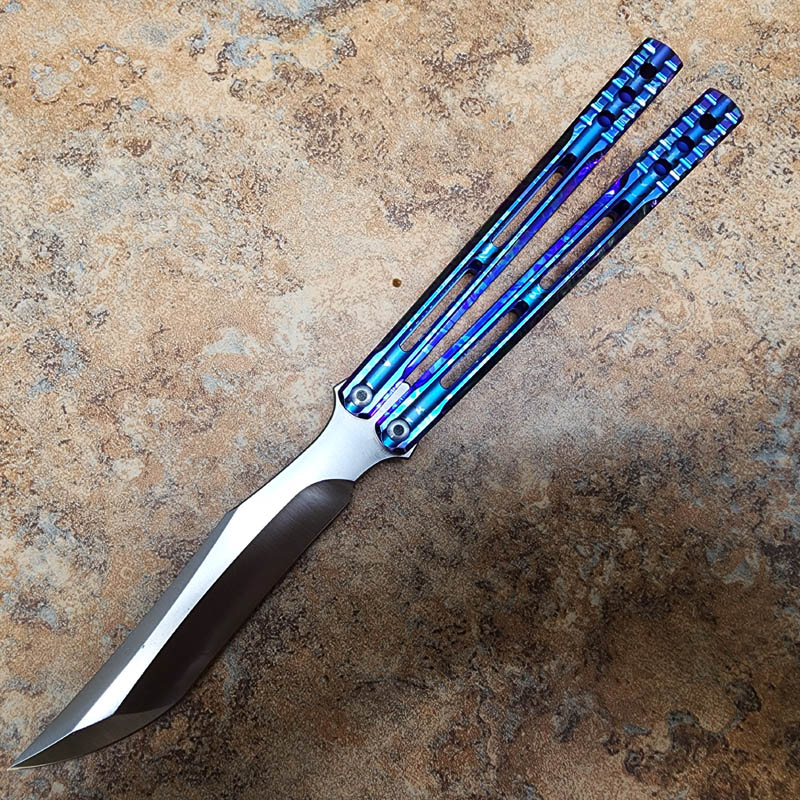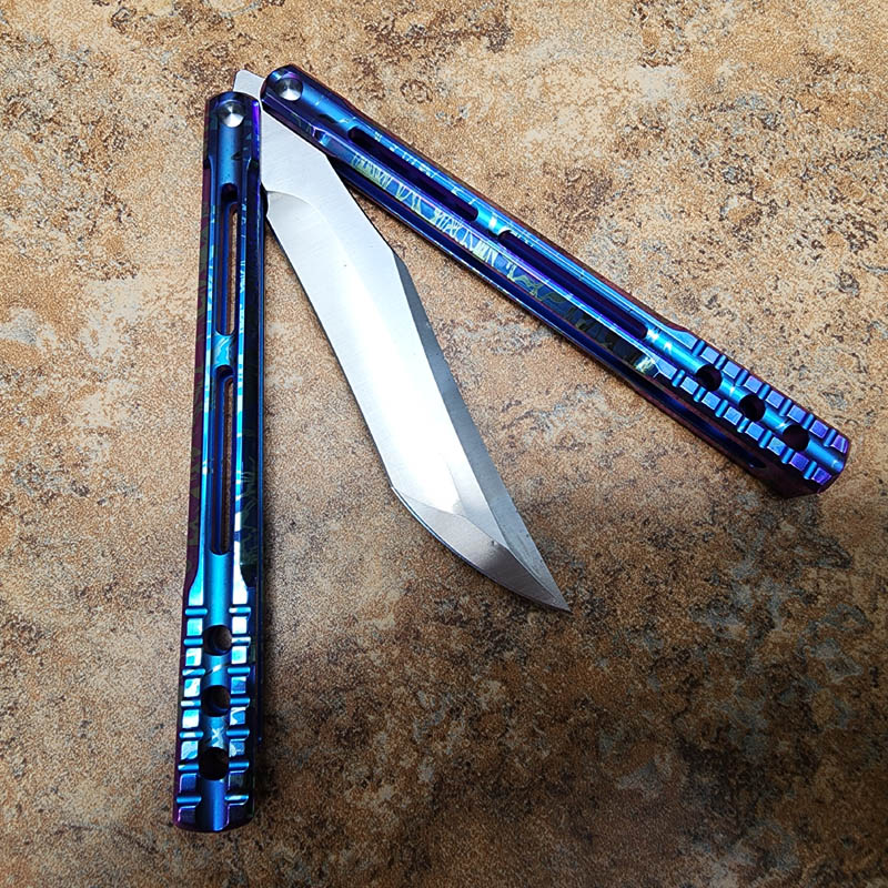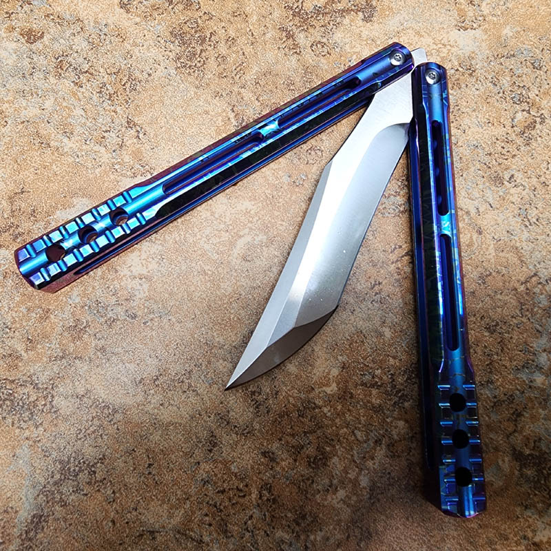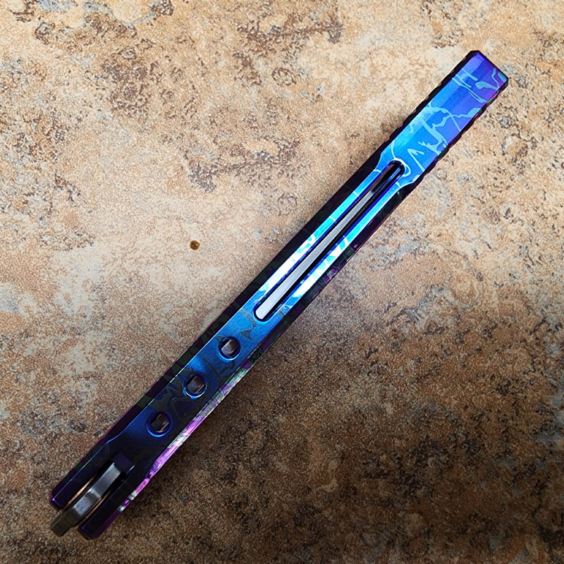 THEONE 一体钛柄火烧雷纹变色蓝 orca 虎鲸蝴蝶甩刀