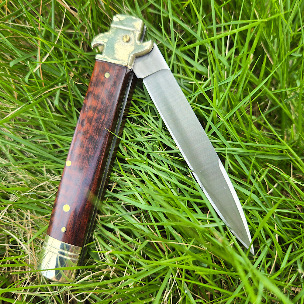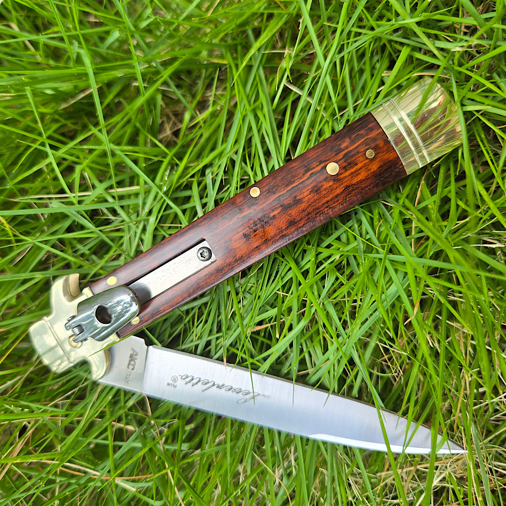 Plus款 正品意大利Akc 古典跳刀蛇纹木柄镜面刃leverletto